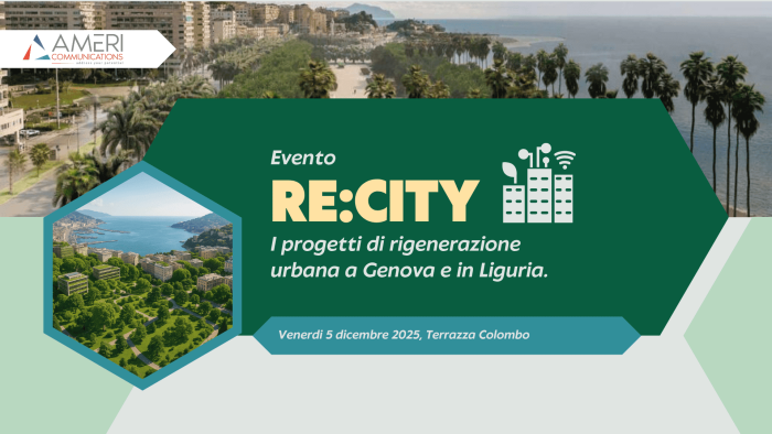 Venerdì 5 dicembre 2025, presso Terrazza Colombo – Genova dalle 9 alle 12:30, si terrà ReCity: I progetti di rigenerazione urbana a Genova e in Liguria (5 CFP) in collaborazione con il Comune di Genova e Camera di Commercio.